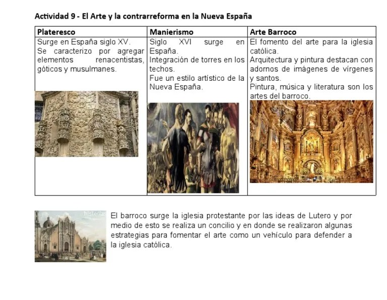 Para ello, se describen a continuación las características principales de cada movimiento, desde el manierismo (precursor del … Se denomina así a los múltiples estilos desarrollados en europa desde la caída del imperio Su aplicación en la nueva españa se vio notablemente enriquecida por la interpretación de los artesanos indígenas, quienes le imprimieron un particular toque al incluir símbolos prehispánicos.